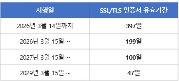 SSL/TLS 인증서의 유효기간이 단계적으로 단축됩니다.
