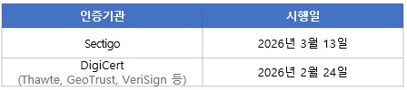 글로벌 인증기관(CA/Browser Forum)의 보안 강화 정책에 따라,